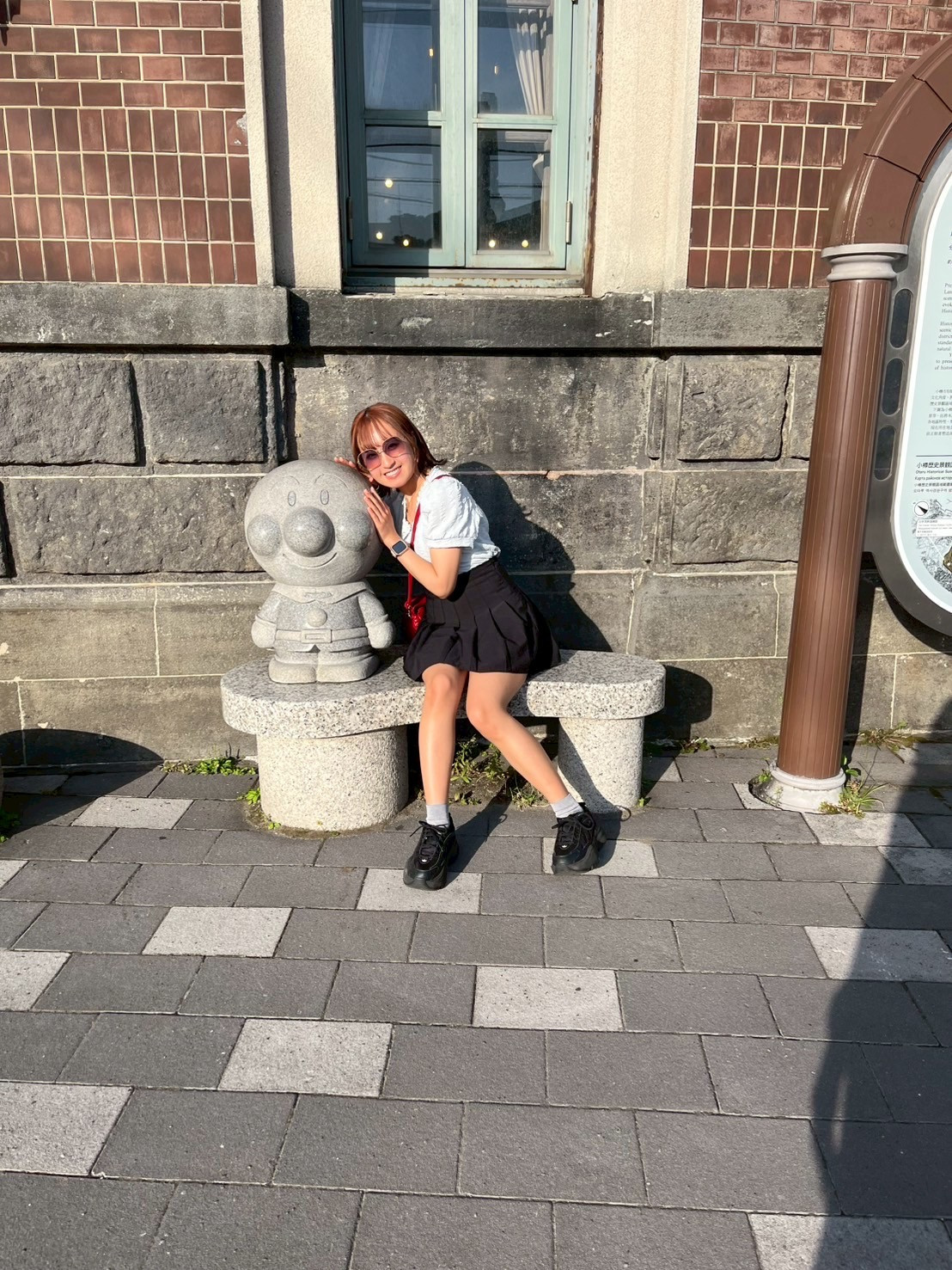 だから全国各地のアンパンマンのこの石像の隣に座って、いつも撮るんです📸